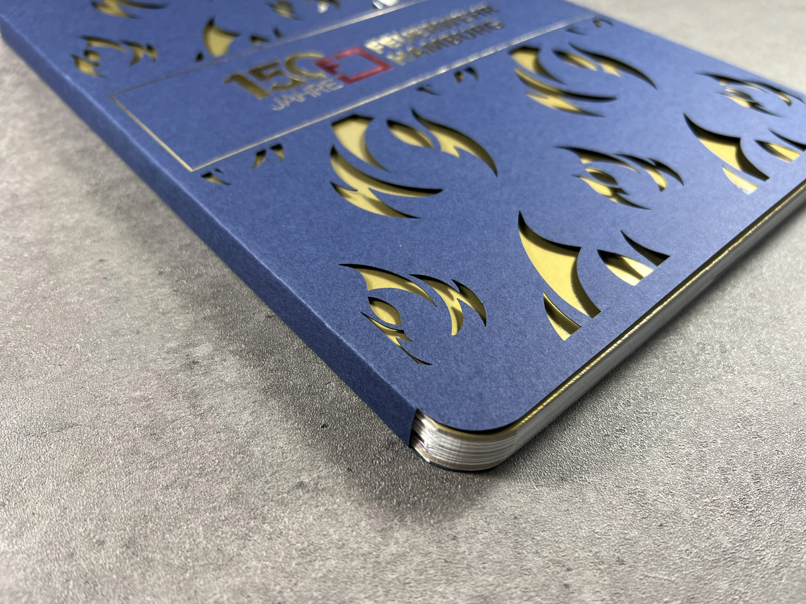 Diese Chronik wurde im Offsetdruck gefertigt und als Steifbroschur verarbeitet. Ein gelaserter Schutzumschlag mit verschiedenen Heißfolienprägungen verleiht dem Produkt besondere Wertigkeit. Durch Offsetdruck lassen sich feine Details, satte Farben und hochwertige Veredelungen auch bei höheren Auflagen zuverlässig realisieren.