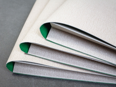 Diese Mappe entstand im Offsetdruck mit Fokus auf Materialität und Funktion. Ein Lederfaserstoff außen, einfarbig bedruckte Innenseiten sowie Prägungen, Stanzungen und Metallösen erzeugen einen hochwertigen Eindruck. Offsetdruck ermöglicht eine gleichbleibende Qualität und die präzise Umsetzung komplexer Veredelungen.